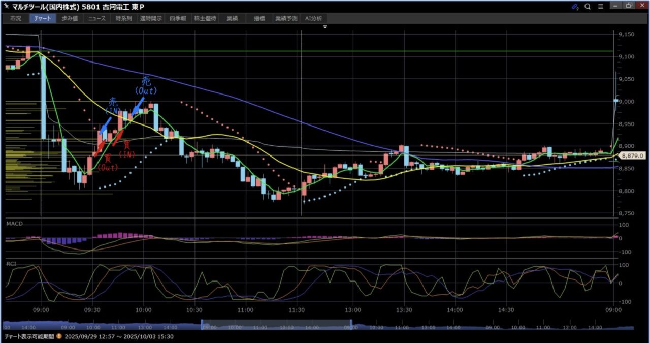 8,931(100株)買い → 8,966(100株)売埋 +3,500