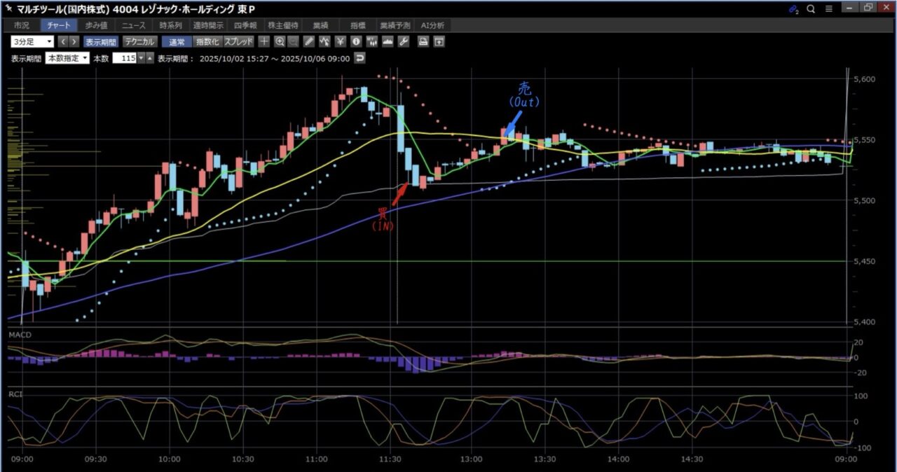 3,669(100株)買い → 3,672(100株) 売埋 +300