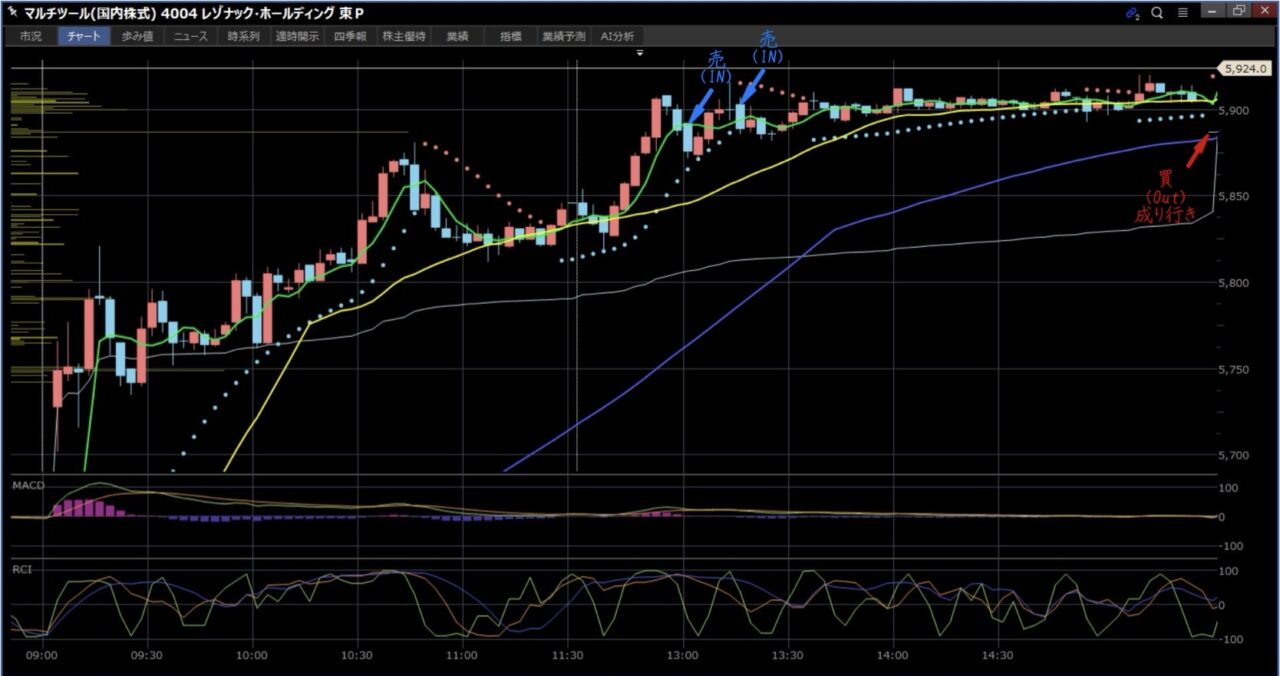 5,873(100株)売り → 5,901(100株)増し → 5,887(100株)買埋 0