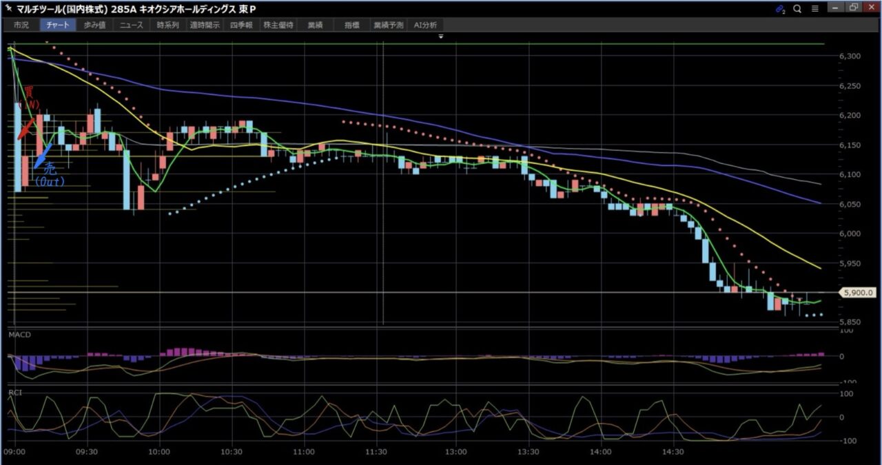 買いでINするときは5日線の下かせめて同じところくらいでINできなければ諦めるということがなかなかできず高値を追ってINする頃には高値掴みしてるのなんとかしたいです…