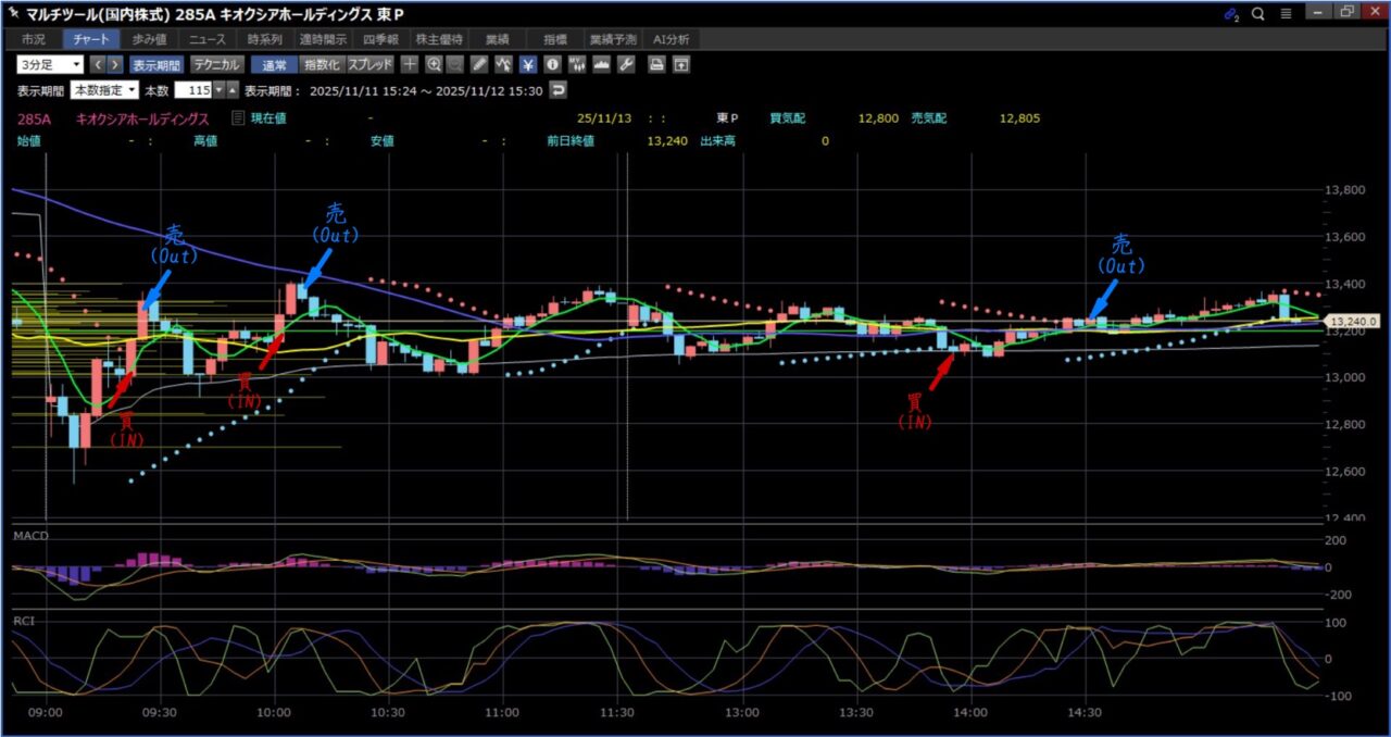 13,185(100株)買い → 13,240(100株) 売埋 +5,500