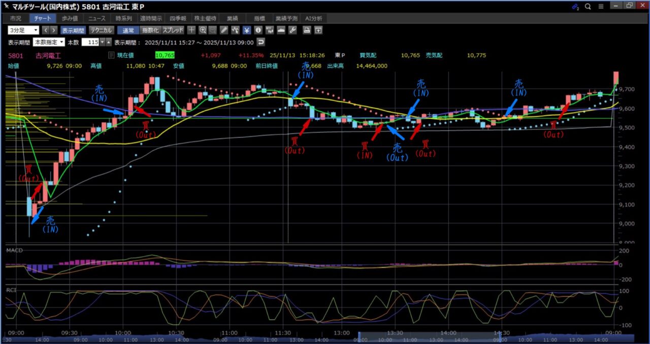 9,526(100株)買い → 9,518(100株) 売埋 -800